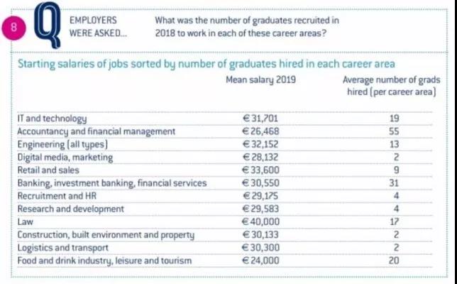 只有近3%的雇主,提供低于2萬(wàn)歐元的工資;81%的雇主卻表示明年將維持或提高對(duì)畢業(yè)生的招聘要求,且絕大多數(shù)受訪雇主(88%)愿意提供培訓(xùn)和實(shí)習(xí)機(jī)會(huì)。