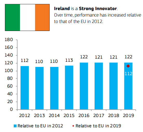 在新公布的《2020歐洲創(chuàng)新記分牌》中,愛爾蘭獲得高達122的分數(shù),遠高于歐盟平均水平112分,再度榮獲“歐洲強大創(chuàng)新者”稱號。報告指出,愛爾蘭當前更為核心、重要的創(chuàng)新優(yōu)勢集中體現(xiàn)在就業(yè)影響力、人力資源和充滿吸引力的科研體系。