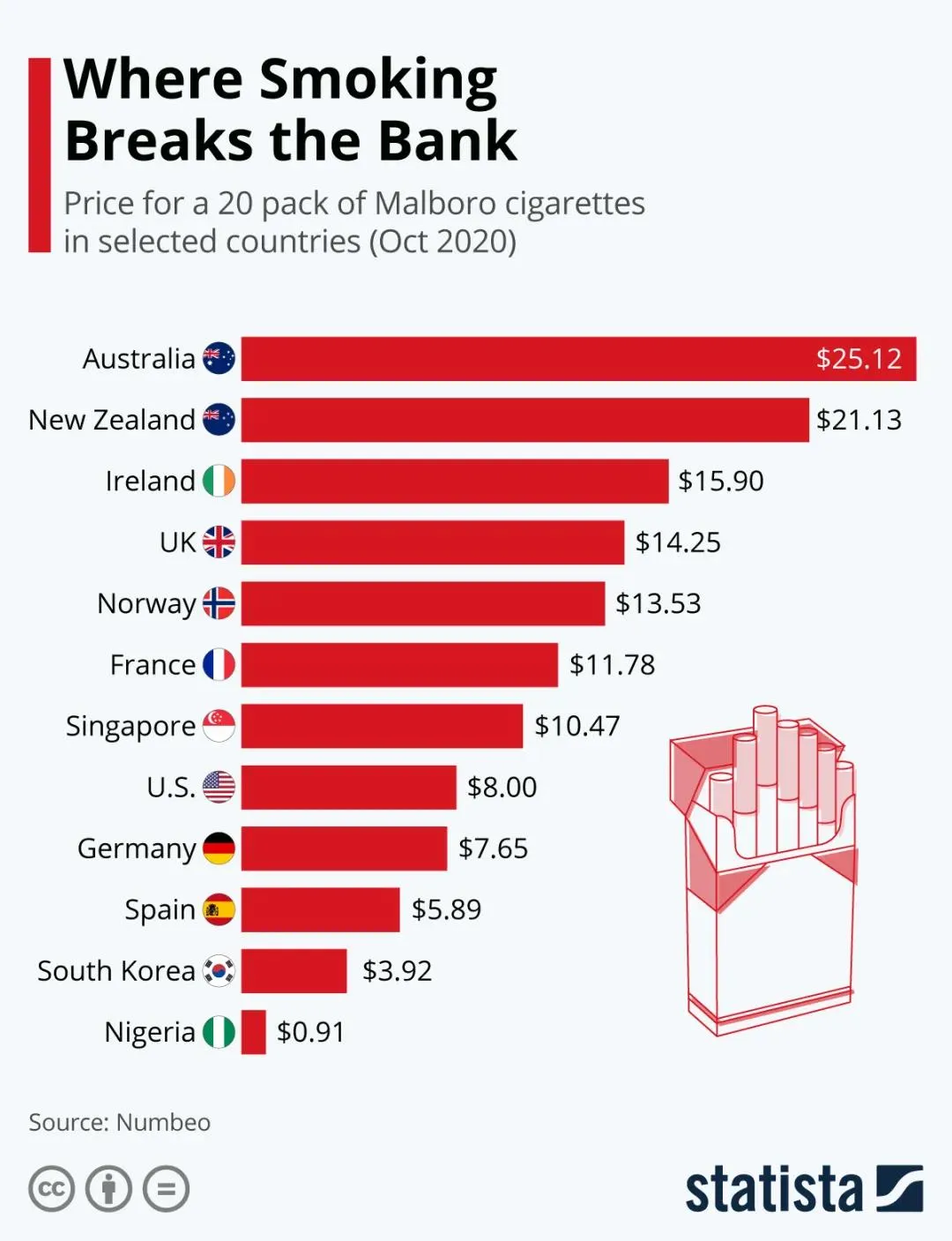 “愛爾蘭的煙卷價格是全球第三高,僅次于澳州和新西蘭”