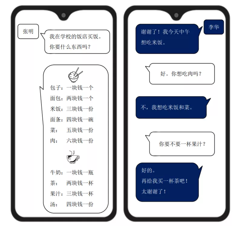 2.李華希望午飯吃四樣東西,請說出其中三種及其價格。
