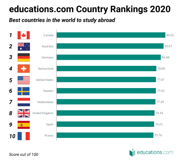 2020全球最佳留學(xué)國排名出爐,第一名不是英美,是它!