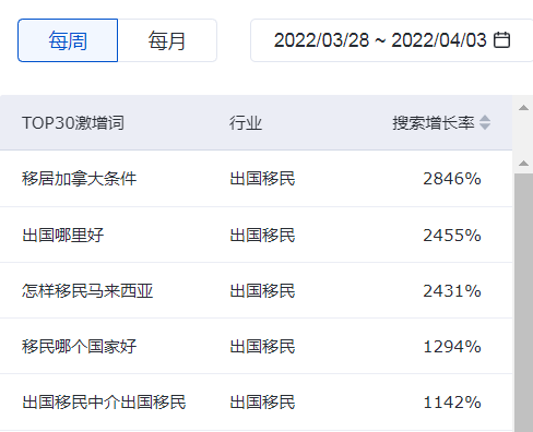 根據百度最新公布的周數據,【移居加拿大條件】詞條搜索暴增2846%!【移民美國條件】詞條搜索暴增2259%!