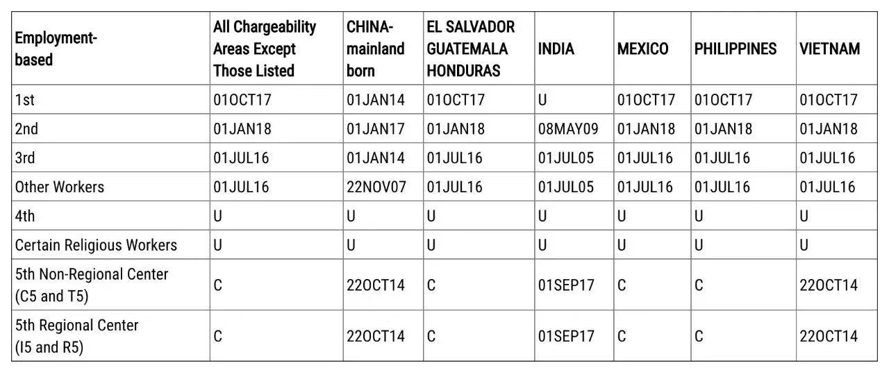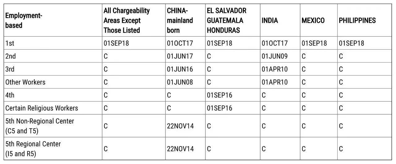 8月15日,美國國務院簽證辦公室發布了2019年9月的簽證公告牌。其中,EB-5排期前進一周,更新至2014年10月22日,表B也前進一周到2014年11月22日。EB-1排期暫時倒退至14年1月1日,估計是在等待新財年簽證配額,然后再次啟動。