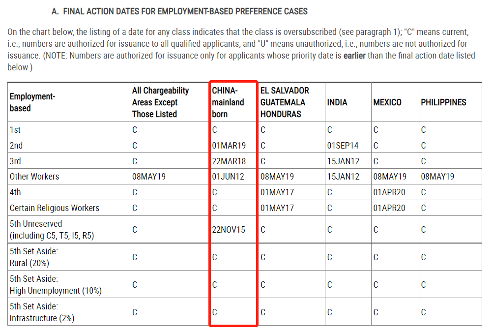 美國國務(wù)院簽證辦公室公布了2022年6月的綠卡移民排期。詳情如下: