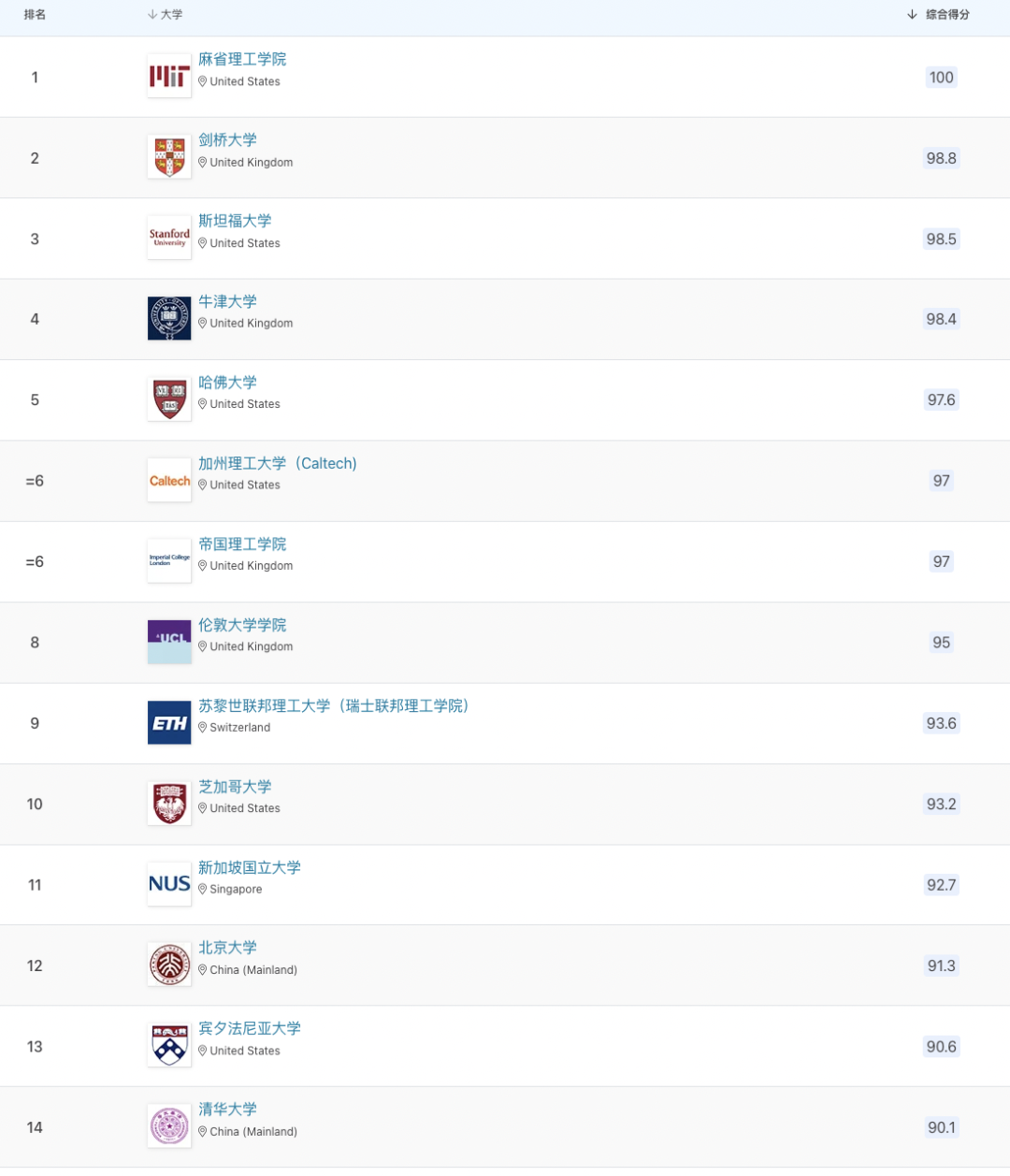 6月12日,QS發布了最新的2023世界大學排行榜。今年麻省理工學院連續第十一年創紀錄地位列世界第一。劍橋大學上升至第二位,斯坦福大學仍位居第三位。