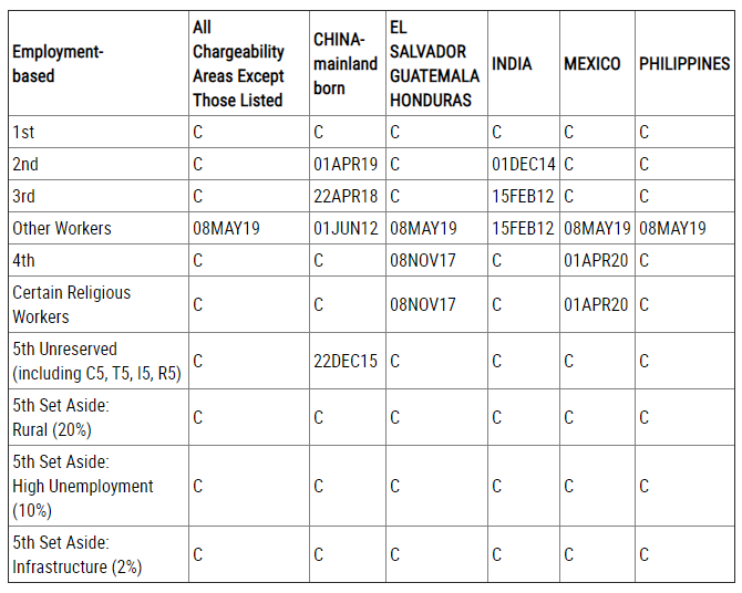 EB-2類別:排期為2019年5月1日,無變化