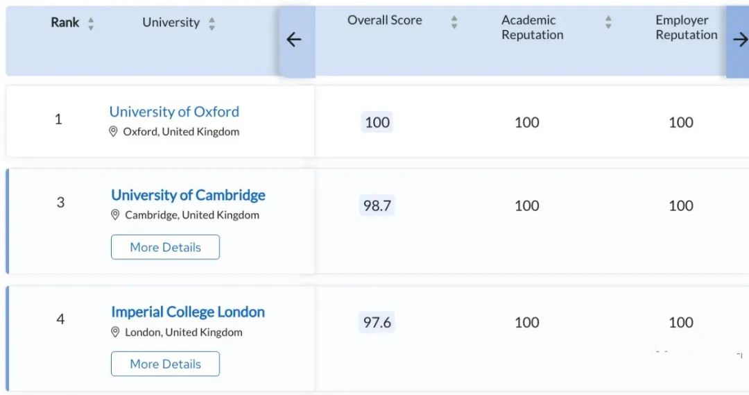 在此次排名中,英國學(xué)校繼續(xù)表現(xiàn)搶眼,前三名分別是:牛津大學(xué)、蘇黎世聯(lián)邦理工、劍橋大學(xué),英國占據(jù)2席。